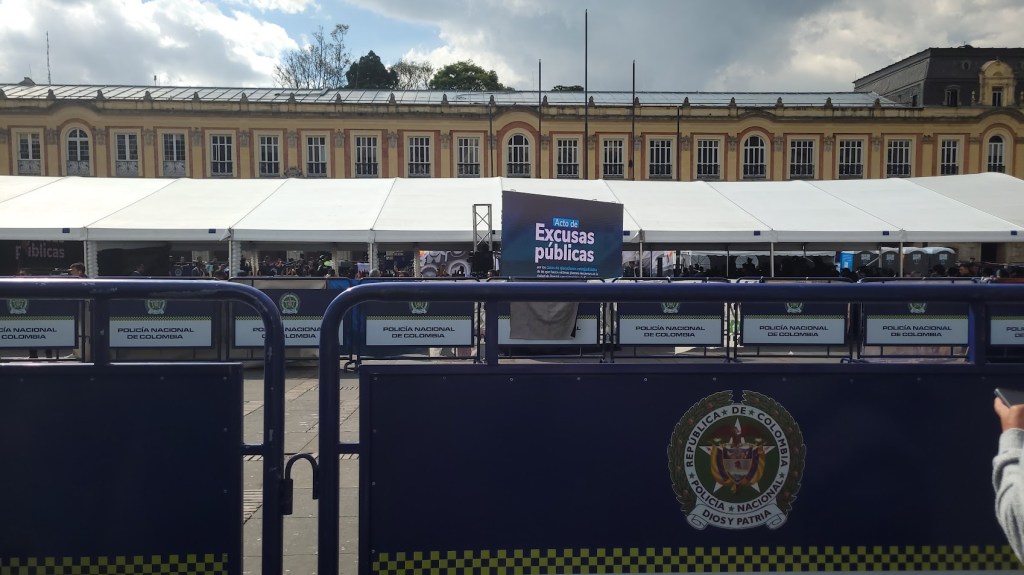 El acto de excusas públicas para las personas familiares de los mal llamados “falsos positivos” se llevó a cabo ayer, 3 de octubre de 2023, en un pequeño y resguardado espacio de la plaza de Bolívar. Se hizo en “cumplimento del Acto 033 de 2021 de la Sala de Reconocimiento de Verdad y Responsabilidad de la Jurisdicción Especial para la Paz y las órdenes establecidas por el Consejo de Estado, el Tribunal Administrativo de Cundinamarca y Norte de Santander y Juzgados Administrativos de Villavicencio, Bogotá, Cúcuta, Tunja y Bucaramanga” (Portal Mindefensa, 04/10/23). Fue un proceso largo y arduo, porque había órdenes jurídicas desde 2015, que fueron desconocidas y obstaculizadas por los gobiernos de Santos y Duque. En nombre del Estado, el actual gobierno asumió la responsabilidad de pedir estas excusas en público, por los actos cometidos durante el gobierno de Uribe bajo la directiva “ministerial 029 de 2005”, firmada por el entonces ministro de defensa, Camilo Ospina, para “reglamentar el pago de las recompensas, evitar los equívocos de parte de la Fuerza Pública y darle transparencia a la política de incentivos” [1]