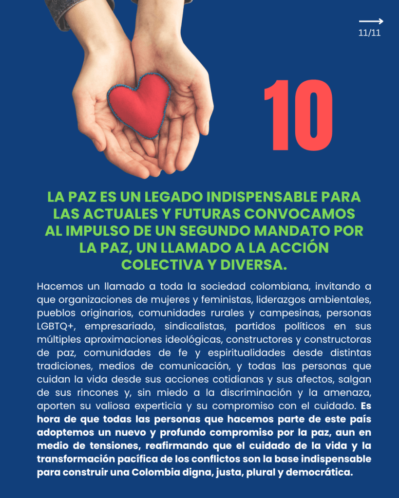 El resultado de este encuentro será un documento que recoja el estado actual de la construcción de paz en Colombia. No es solo una charla; es una exigencia colectiva para que la paz sea un eje prioritario en la agenda nacional y electoral.