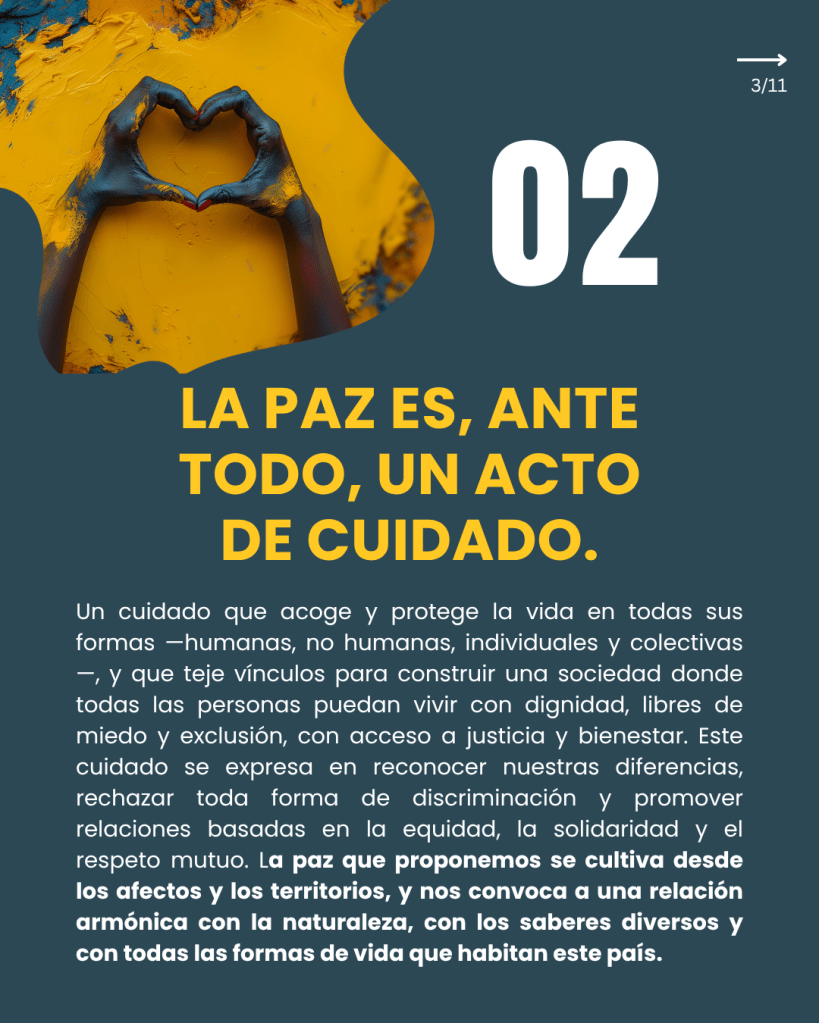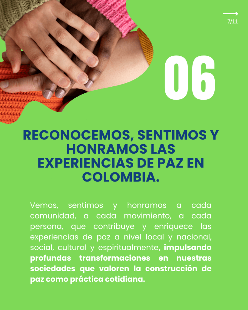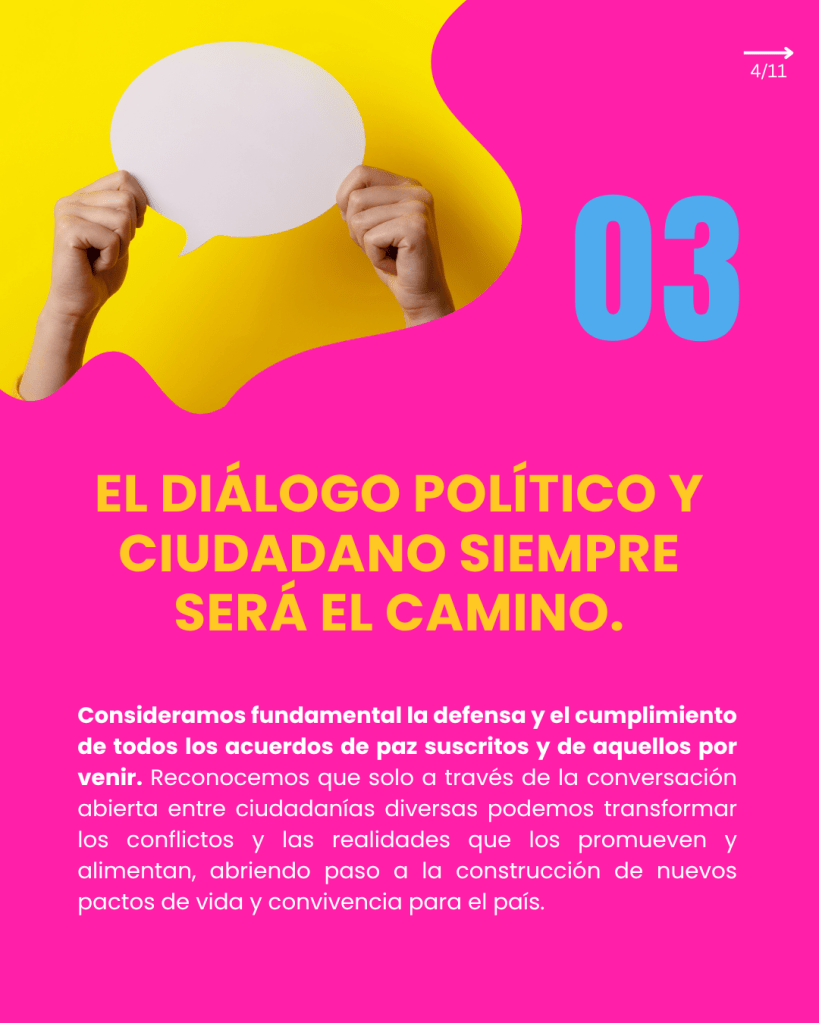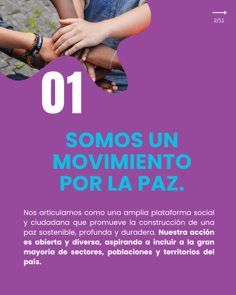 Nos articulamos como una plataforma social y ciudadana para promover una paz sostenible, profunda y duradera. Este espacio busca reactivar la conversación pública, reconociendo las tensiones y barreras emocionales que hoy dificultan su abordaje
