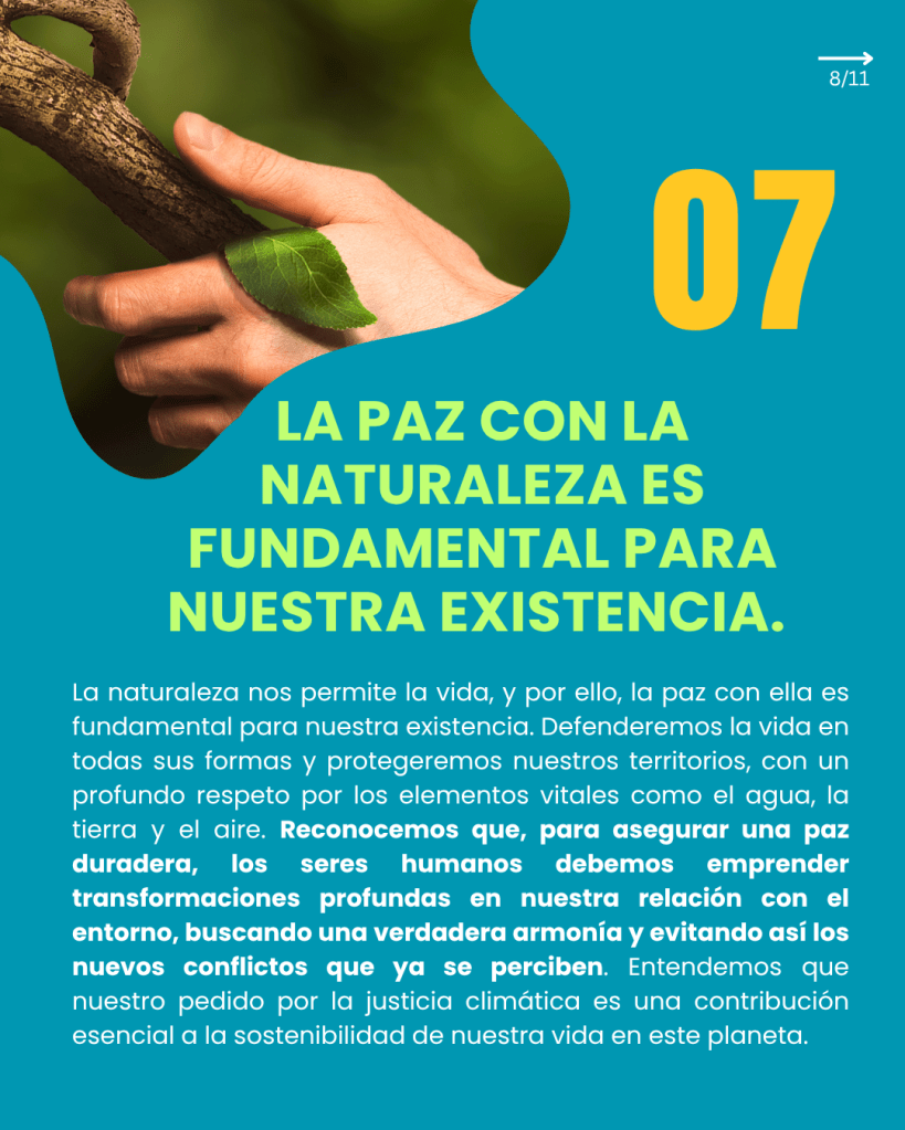 Paz con la Naturaleza: Respetamos el agua, la tierra y el aire como elementos vitales para nuestra existencia.