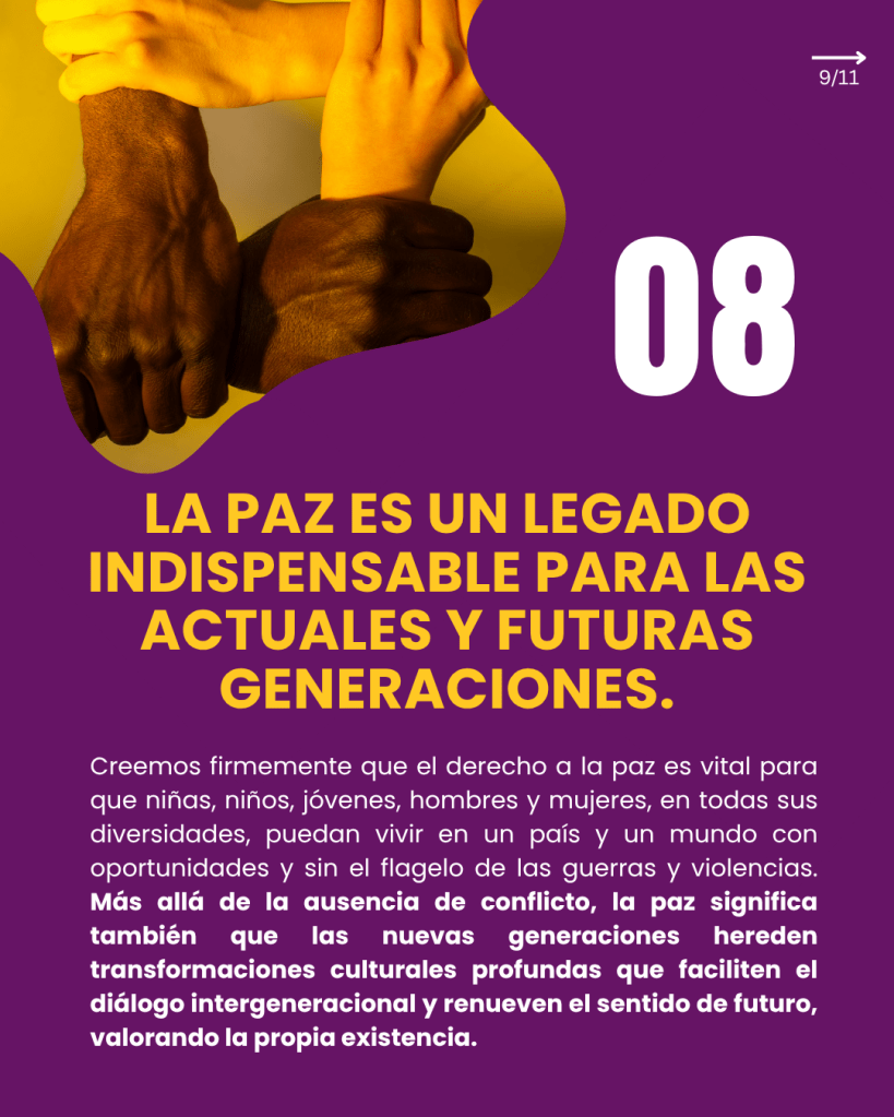 Paz como Legado: Trabajamos por un derecho vital para que las nuevas generaciones vivan sin el flagelo de la guerra.